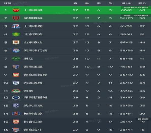 随着亚泰22天津,河南22浙江,中超第28轮最新积分榜如下!