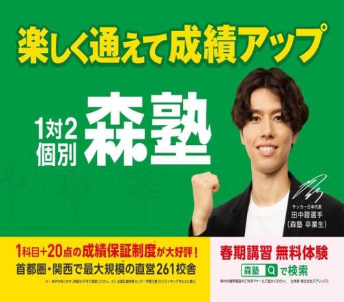 Suplix株式会社运营的个性化辅导机构“森塾”正式任命日本国家足球队的田中碧为官方品牌大使。