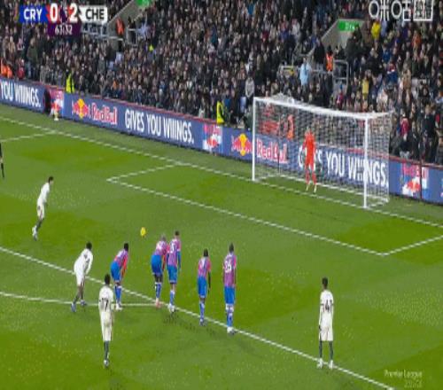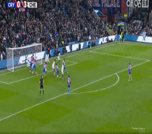 第59分钟,水晶宫禁区内手球犯规,切尔西获得点球,恩佐主罚命中。