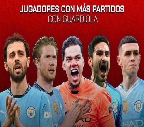 瓜帅麾下球员出场榜:B席421场居首,德布劳内381场次席 -